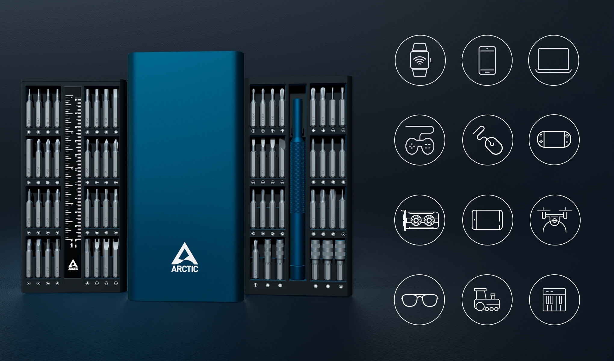 ・Arcticブランドの精密ドライバーセット 豊富な対応ビット数と、アルミニウム製の整理ボックスが特徴・精密ドライバーセット このツールキットがあれば、スマートフォン、ノートパソコン、ゲーム機、時計など、幅広い精密機器の分解・修理に対応可能・実用的なボックスでコンパクトに収納 このセットは、すべてのビットとドライバーを収納できる、頑丈なアルミニウム製の整理ボックスに収められており、持ち運びに便利で、整理整頓もしやすく、外出先でも便利・安全に扱える磁石付きビットホルダー ビットはしっかりと固定され、磁力によってネジの誘導や固定が簡単であり、作業がより効率的で快適・RoHS対応の環境配慮型プロダクト