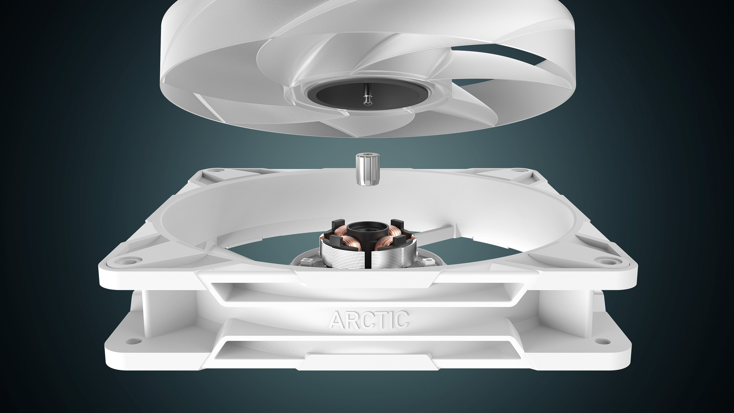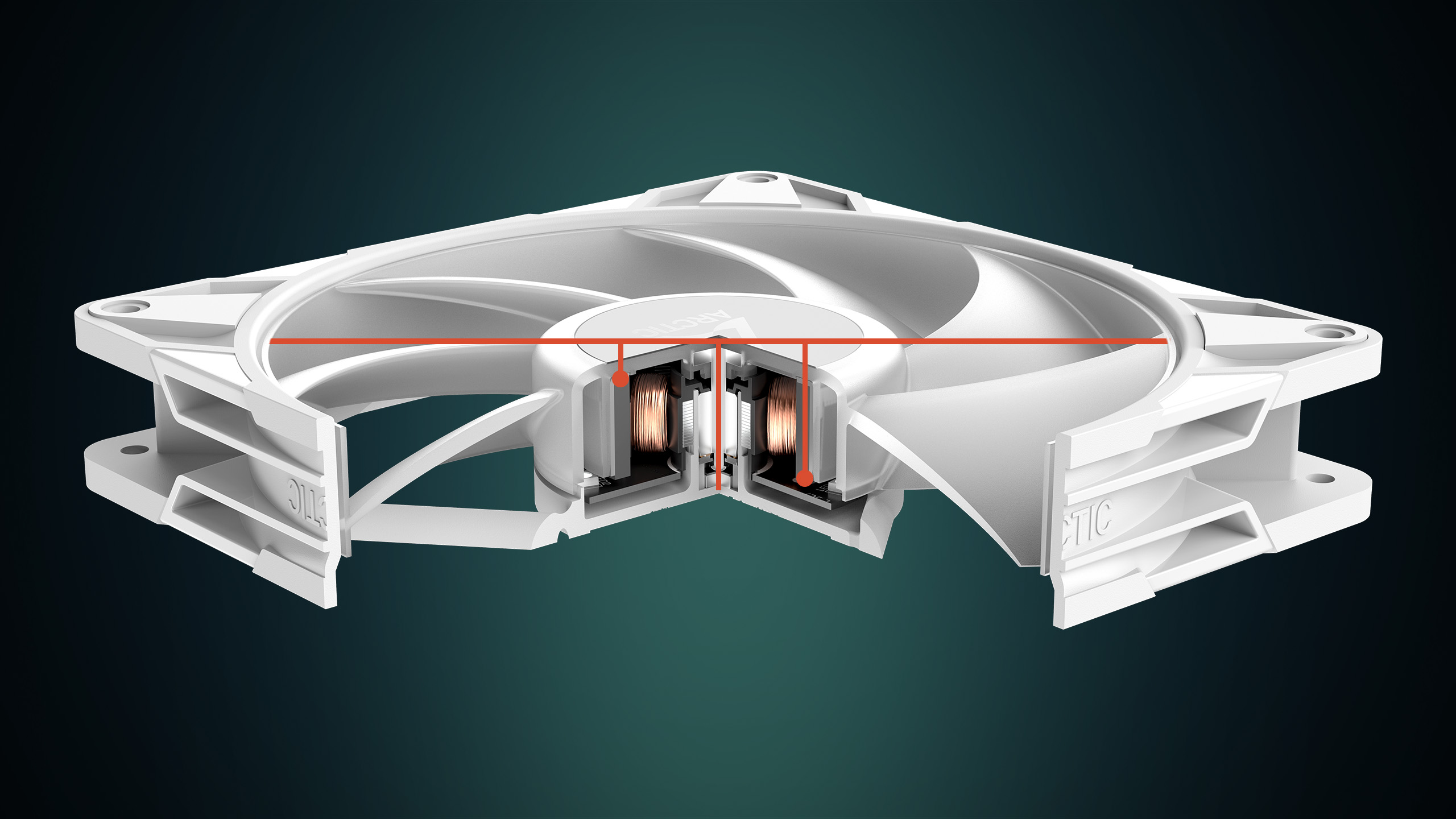 ■最適化されたベアリングシャフト設計(FDB) 延長シャフトと組み合わせた流体軸受により、圧力分散が改善され、振動が最小限に抑えられ、より静かな動作が保証されます。