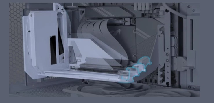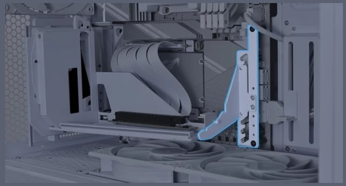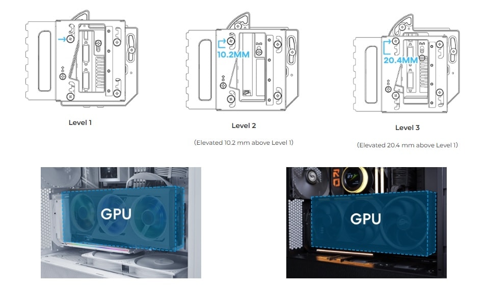 シンプルな1本ネジ調整により、GPUの正確な位置調整が可能で、底面ファンや大型CPUクーラーのクリアランスを確保するのも容易です。