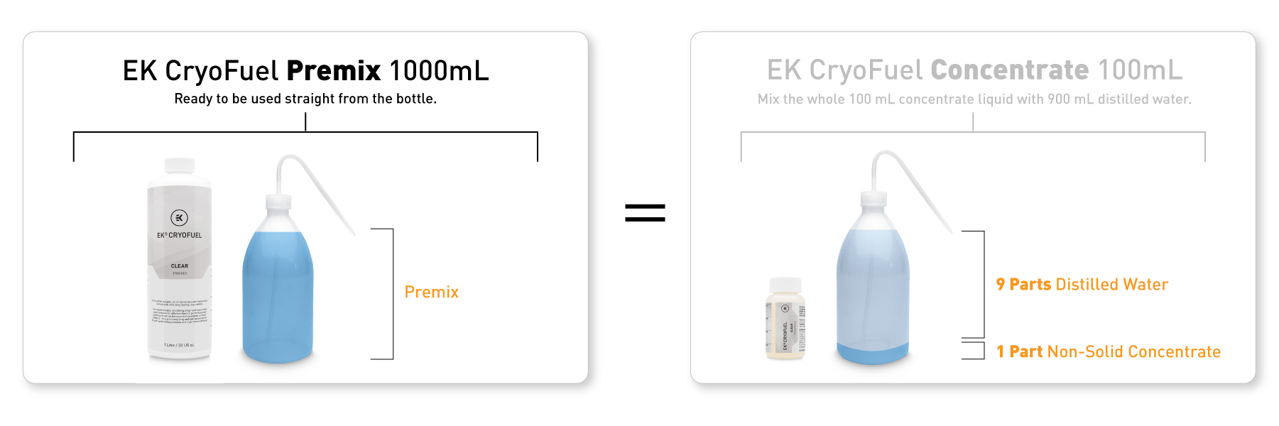 ・Do not add any biocides to EK-CryoFuel as the product already includes such additives! Failure to do so might result in dye and coolant breakdown.