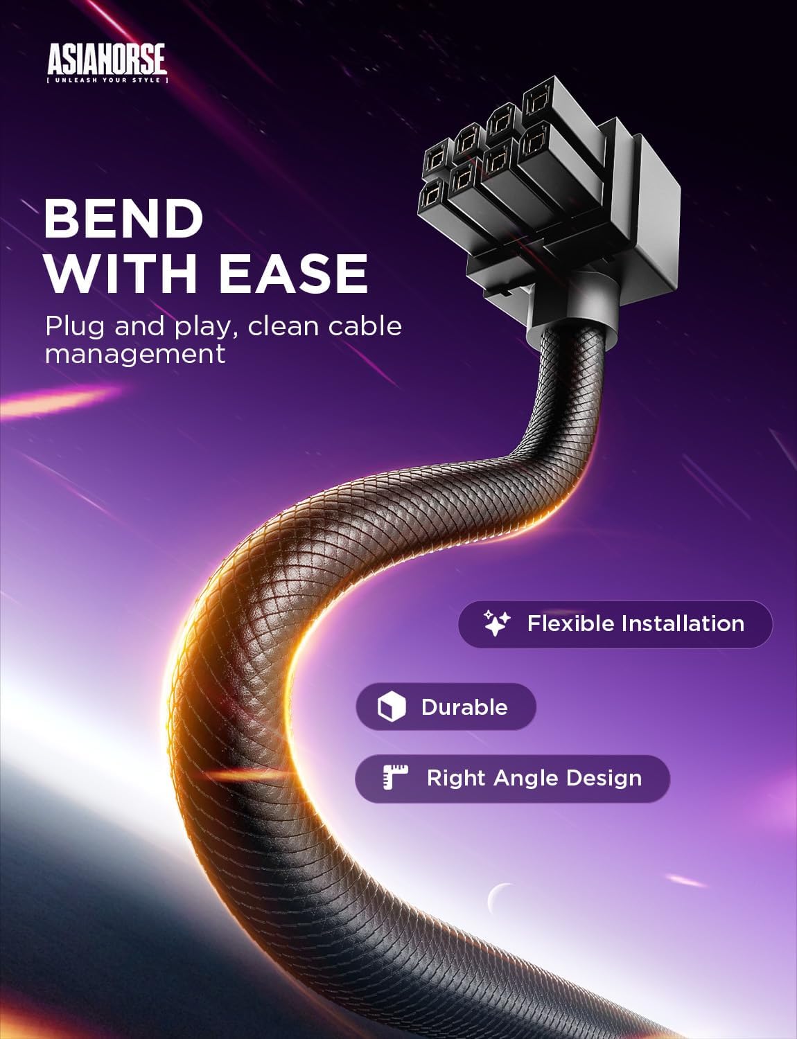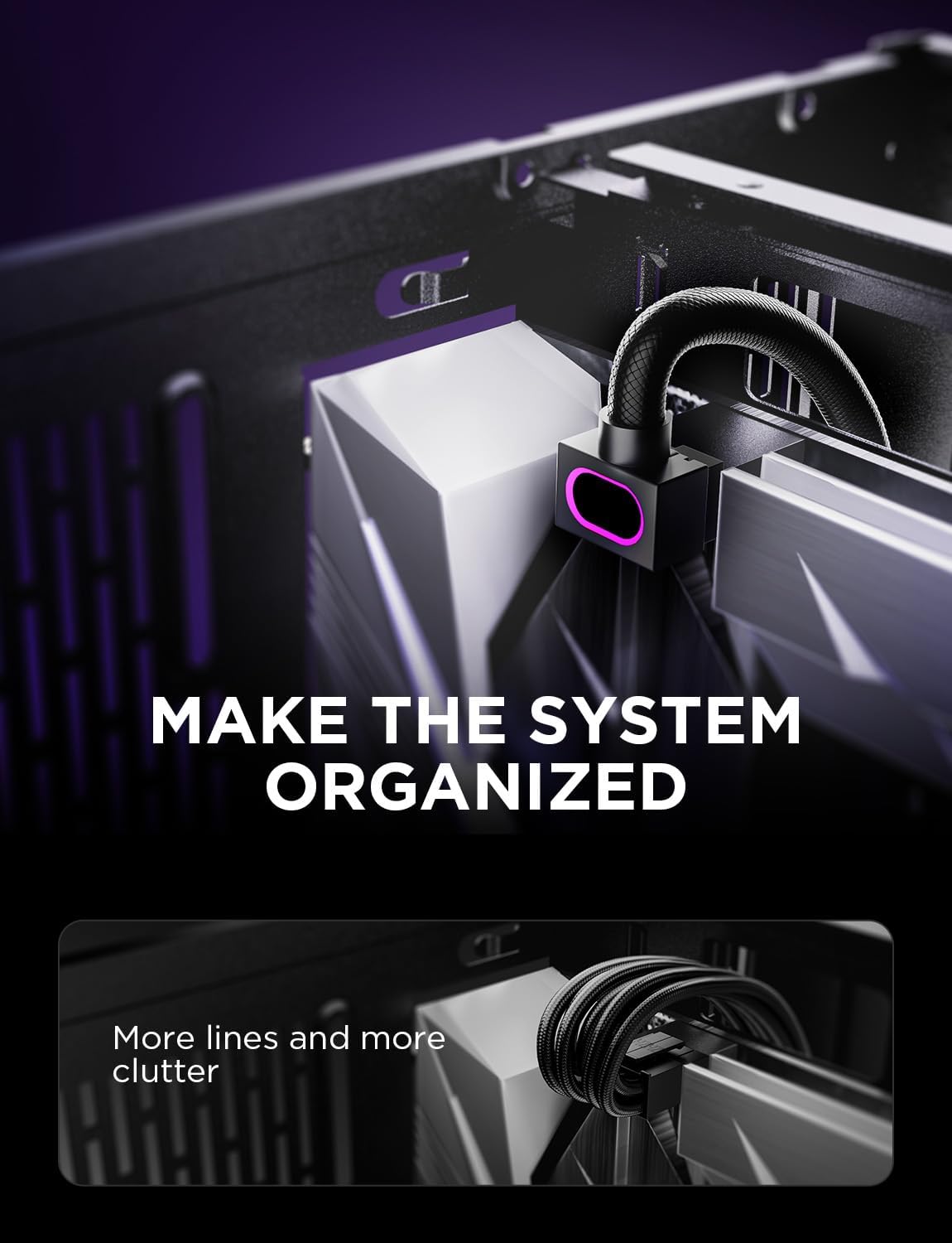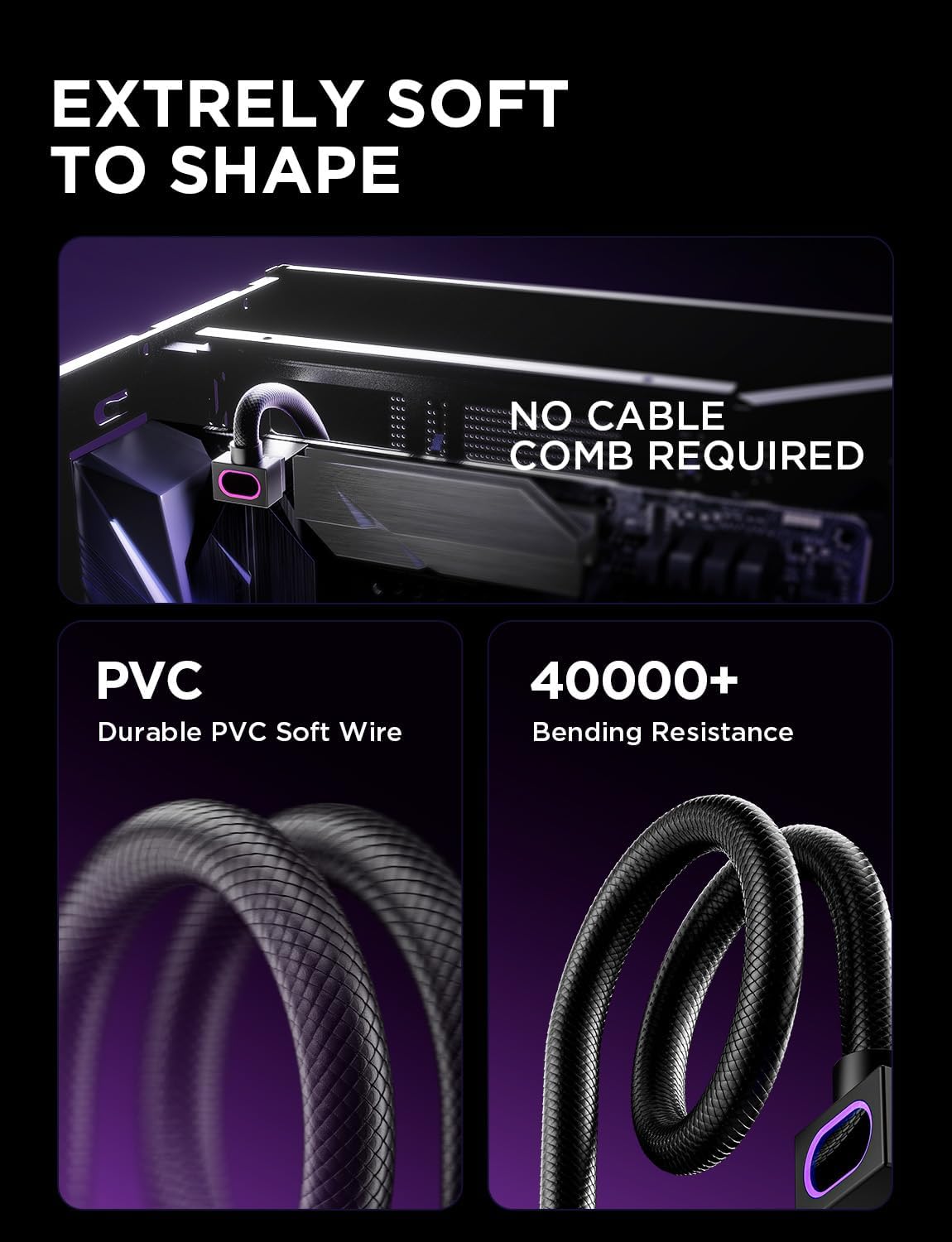 シームレスなスタイルと 90° 直角コネクタを使用して設計されています。曲げる必要がなく、完全な端子接触を保証します。プラグ アンド プレイのセットアップにより柔軟性が向上し、ケーブル管理がきれいになるため、PC DIY ビルドに最適です。
