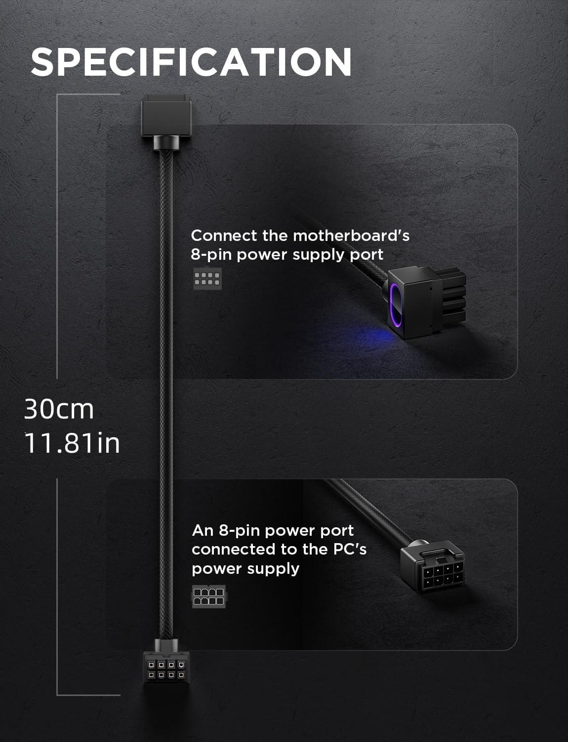 24PIN / CPU 8PIN / GPU 8PIN 延長ケーブル: 長さ 30cm / 11.81 インチ、延長使用に最適です。
