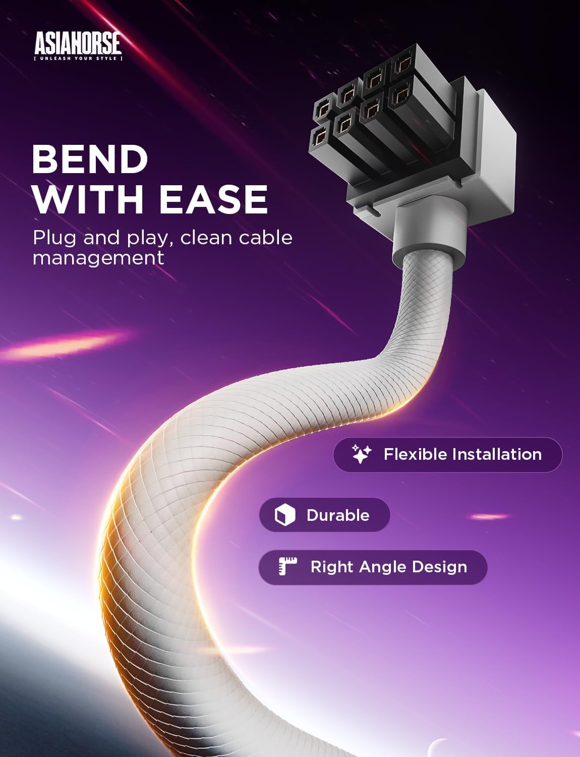 シームレスなスタイルと 90° 直角コネクタを使用して設計されています。曲げる必要がなく、完全な端子接触を保証します。プラグ アンド プレイのセットアップにより柔軟性が向上し、ケーブル管理がきれいになるため、PC DIY ビルドに最適です。