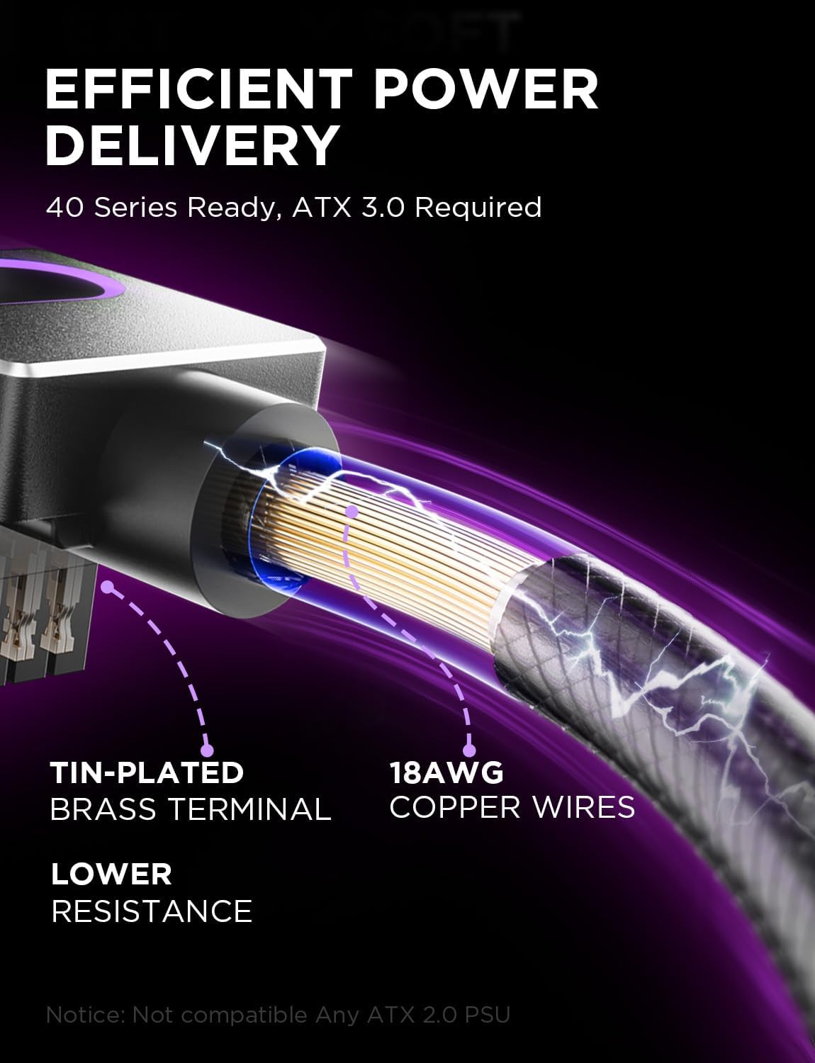18AWG 純銅線コアと真鍮スズメッキ端子 (高電圧および高温耐性) を備え、抵抗を低減します。16PIN モジュラー ケーブルは最大 530W の入力をサポートし、フル セットは最大 1500W の PSU 電力をサポートして、電流損失を最小限に抑え、ブルー スクリーンを防止します。