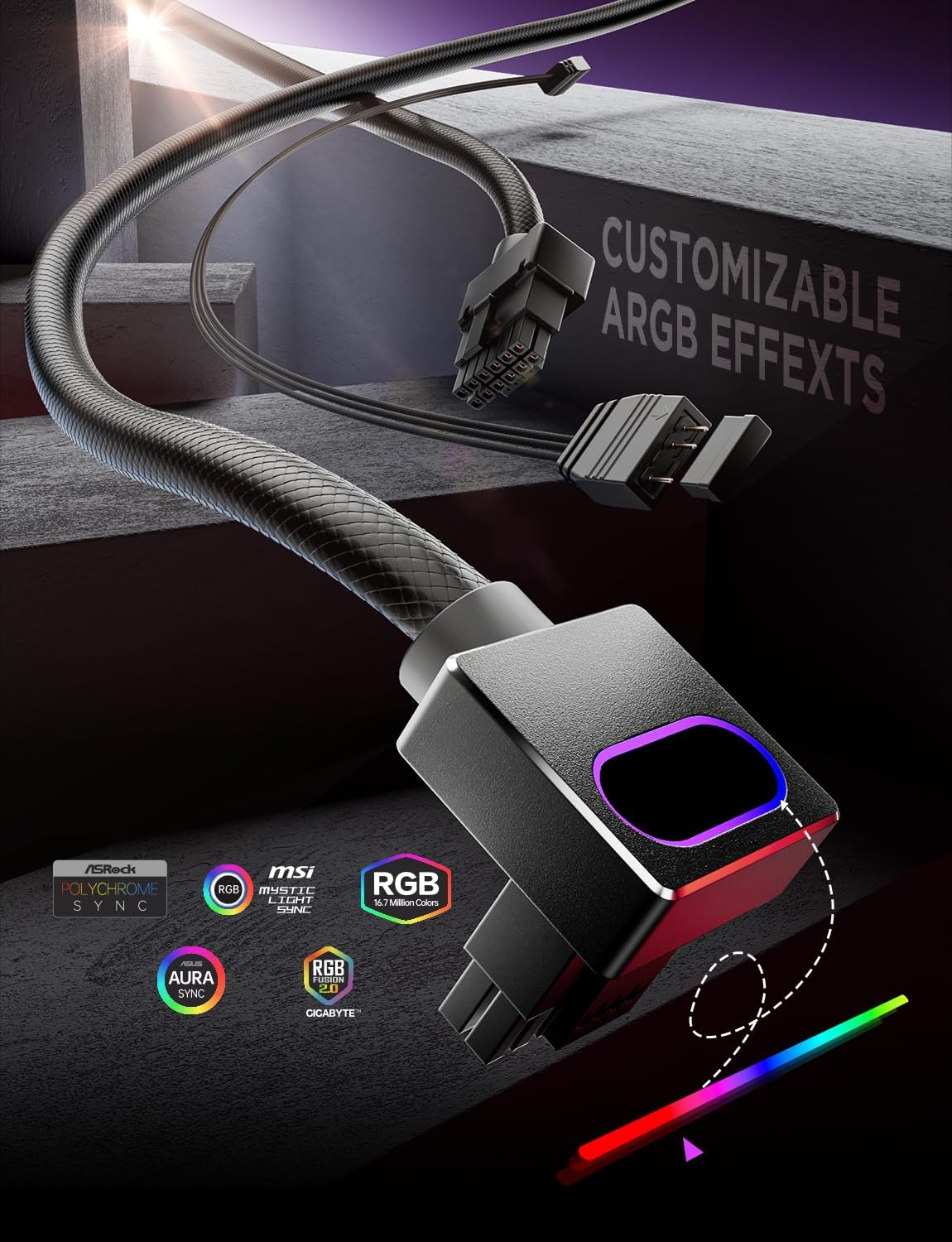 次のレベルの ARGB 効果をビルドにもたらします。幅広い色とダイナミック モードから選択し、ソフトウェアまたはハブを介してシステムと簡単に同期して、統一された目を引くビジュアル エクスペリエンスを実現します。