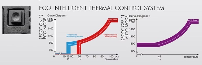 そして一定温度に達するまでファンが回転しない「ECO」に切り替え可能です。