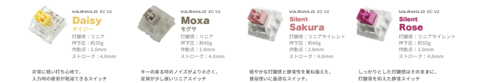 ■ VARMILO製最高級のメカニカル静電容量式スイッチとKailh製メカニカルスイッチを採用