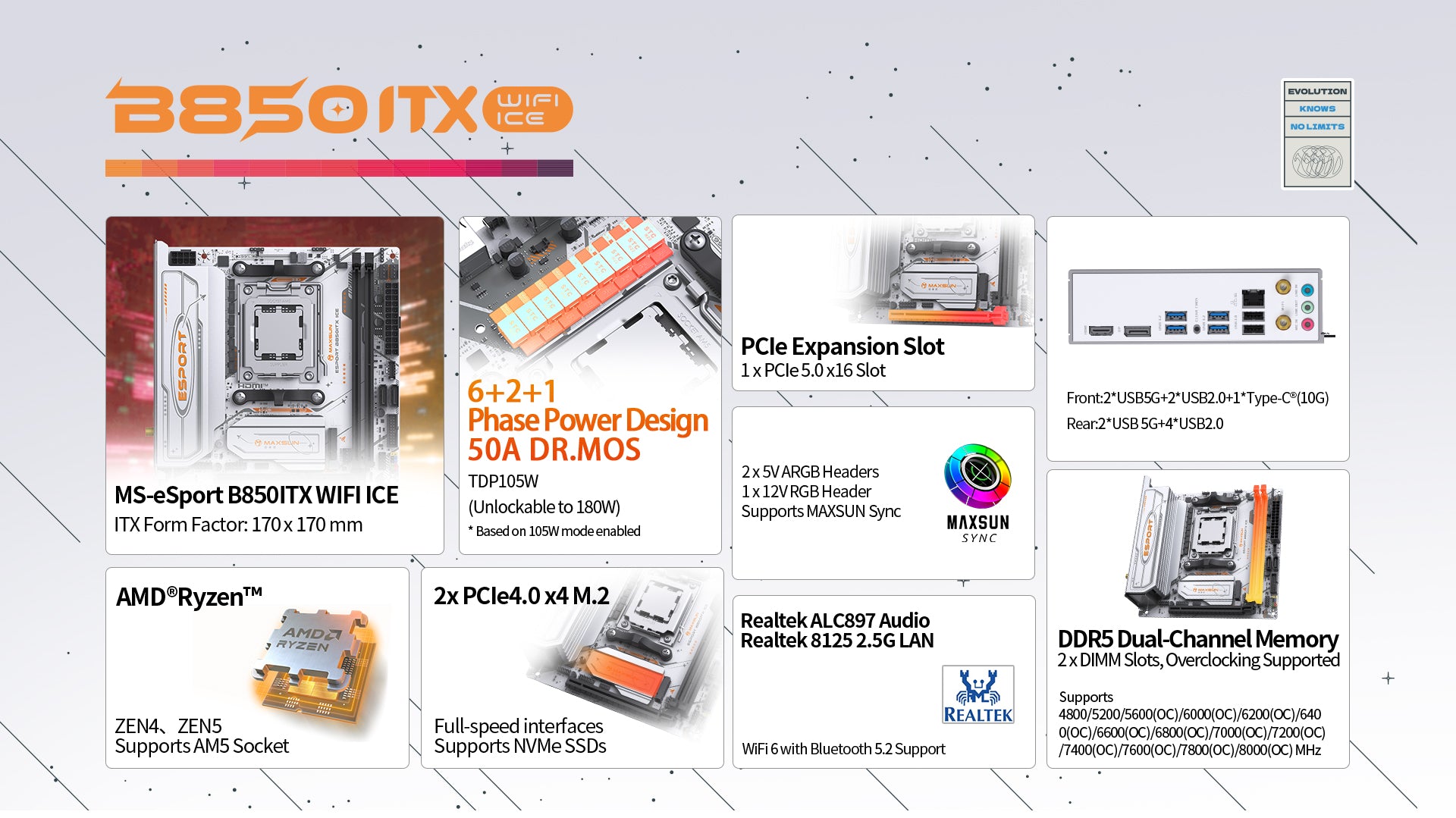 PCIe5.0 / DDR5 8000(OC) / 2.5G LAN / Wi-Fi6