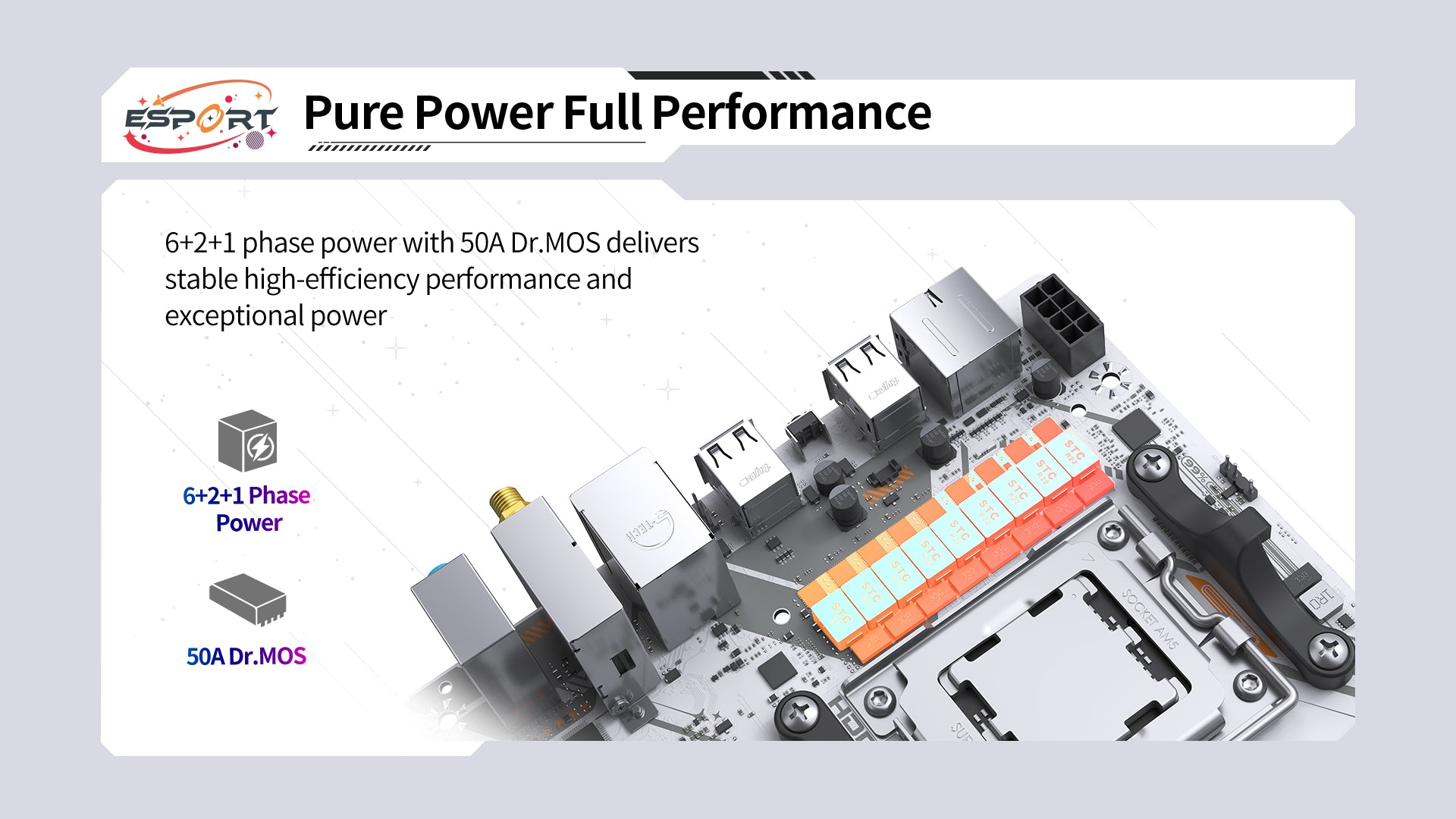 50A DR.MOS 採用、6+2+1フェーズ電源、TDP88W-180W対応