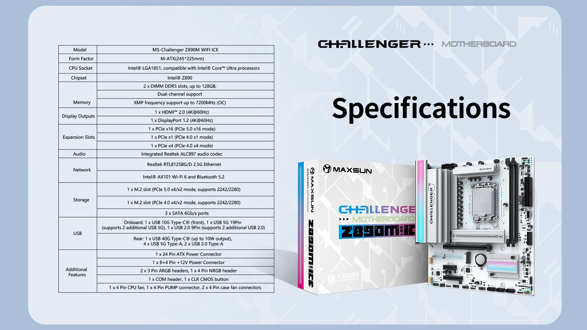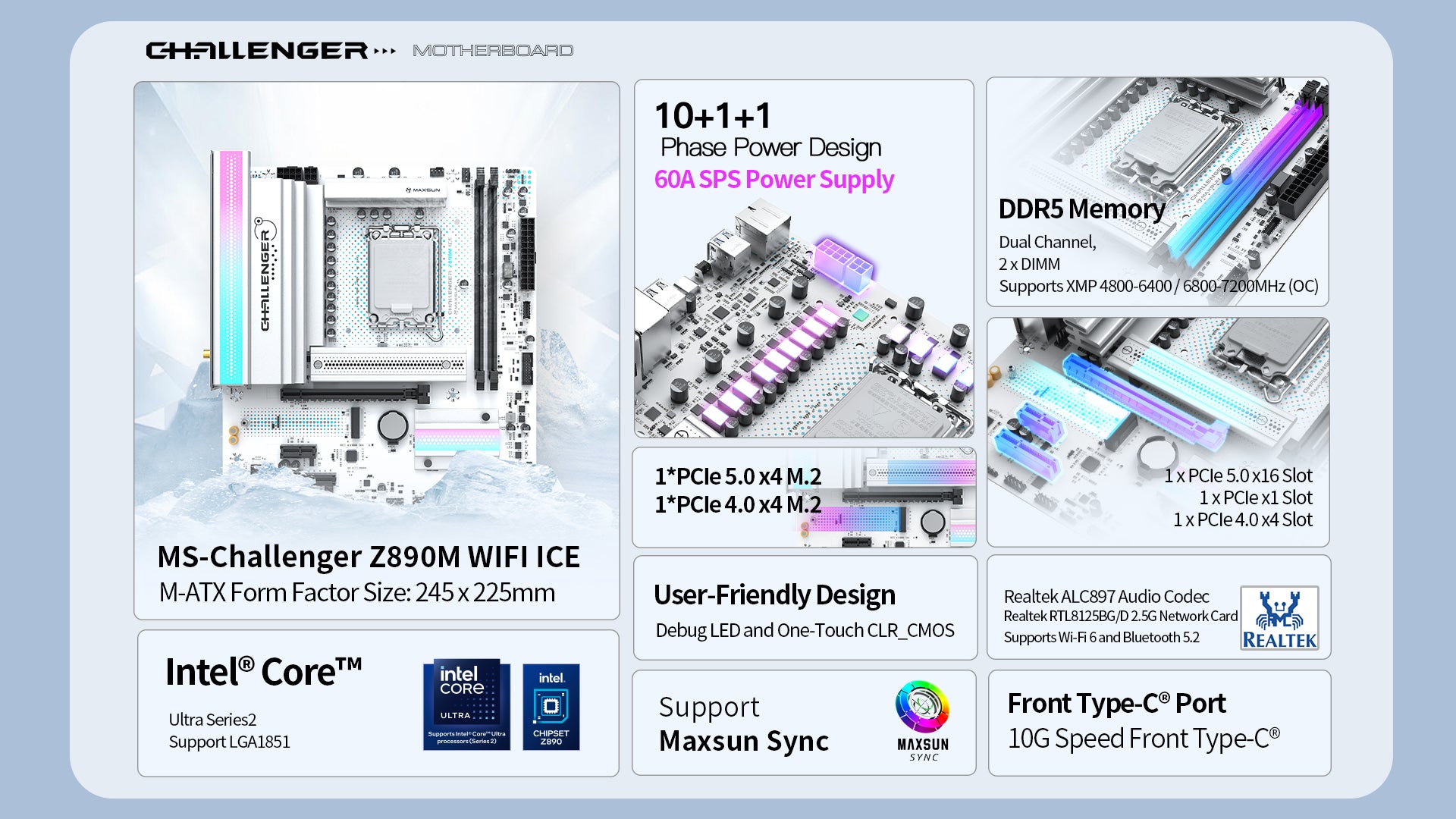 トップ > PCパーツ > マザーボード > INTEL LGA1851 > 【取寄せ商品:納期要確認】 MAXSUN MS-Challenger Z890M WIFI ICE