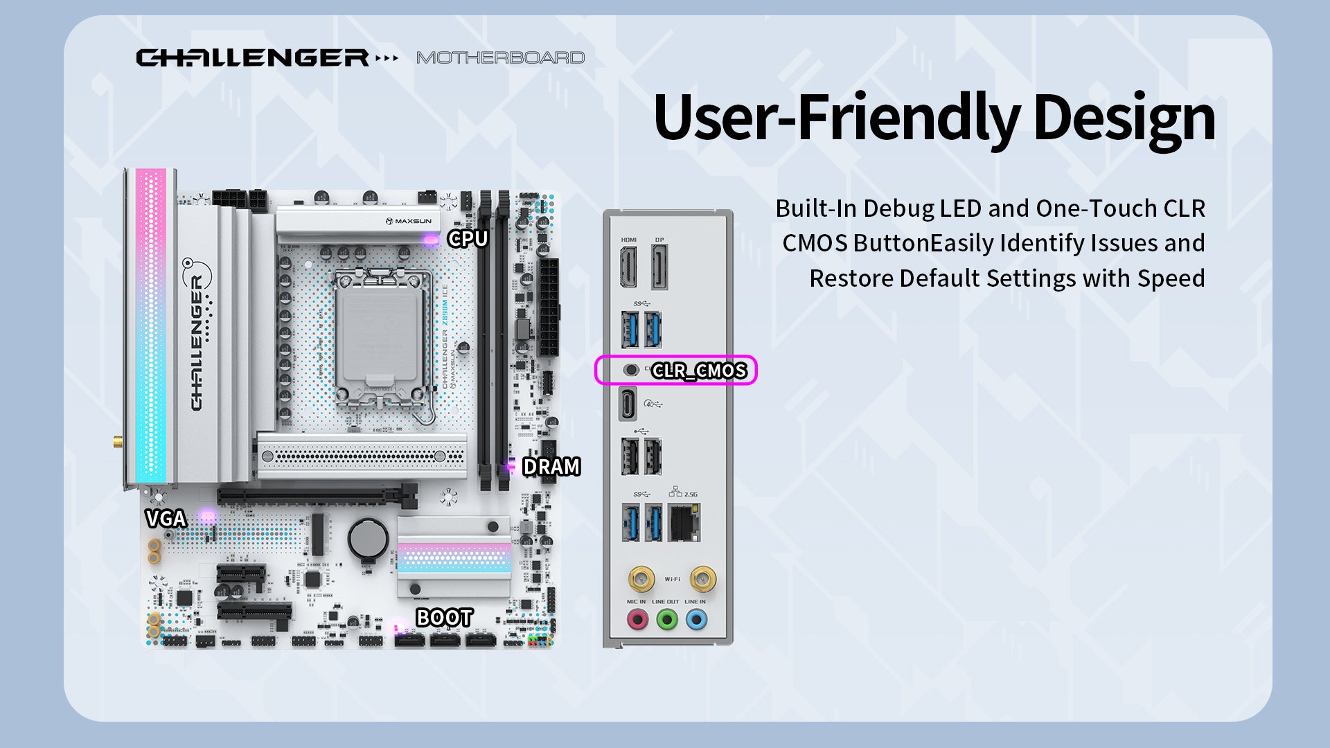 ・フロント USB-C 10G / リア USB4 40G ・Debug LED / One-Touch CLR_CMOS