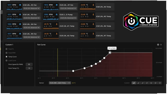 CORSAIR iCUEソフトウェアで冷却を正確に管理し、iCUE LINKでシステムパフォーマンスを高度にコントロール。