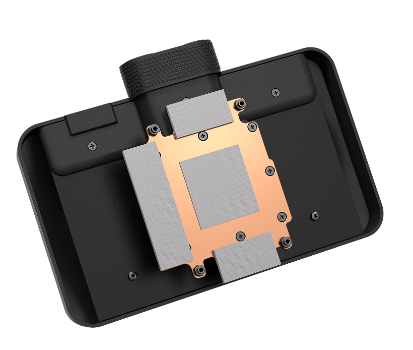 最先端のハイブリッド設計により、最大の冷却性能と低ノイズを実現します。カスタム冷却ループ(別売)を使用して、GPUとメモリICを直接冷却し、専用のRGBライト付きファンで回路基板とVRMに向けてエアフローを供給し、さらに冷却効果を高めます。