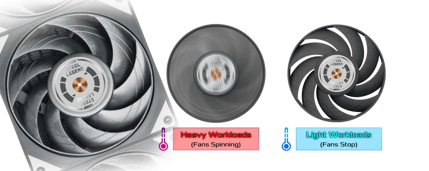 低負荷時はファンを完全停止し、無音運転と長寿命化を実現。